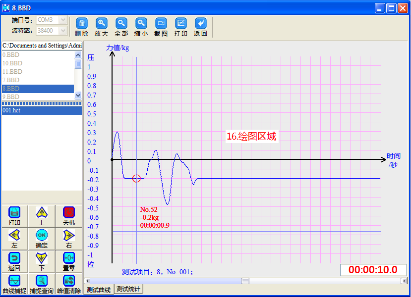 峰值、實時值、和測試過程曲線同屏顯示,可監控和追溯測試全過程: