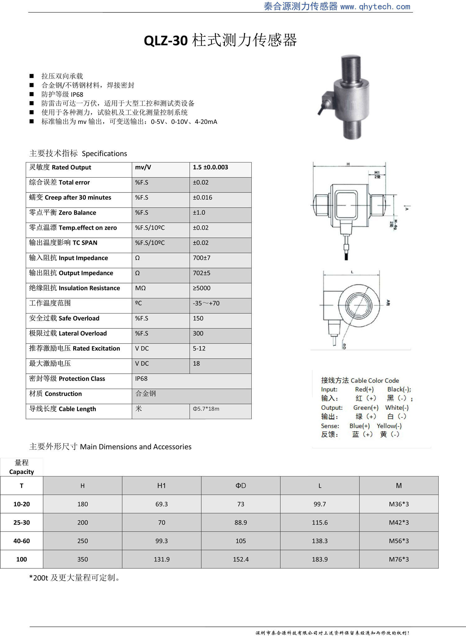 產品特點: 拉壓雙向承載,合金鋼/不銹鋼材料,焊接密封,防護等級IP68,防雷擊可達一萬伏,適用于大型工控和測試類設備使用于各種測力,試驗機及工業化測量控制系統,標準輸出為mv輸出,可變送輸出:0-5V、0-10V、4-20mA;