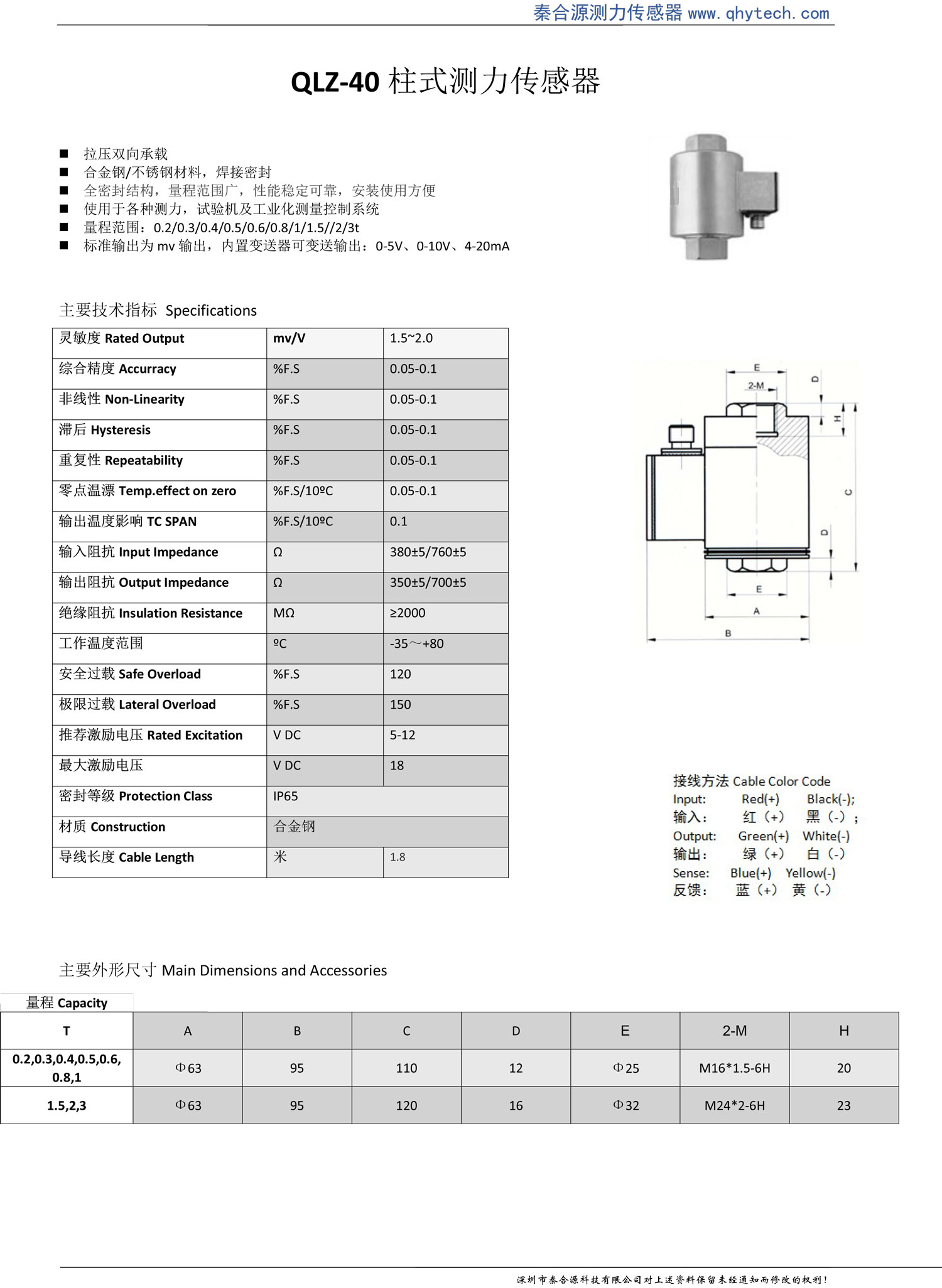 產品名稱:小量程拉壓力傳感器 QLZ-40(0.2-3T)柱式測力