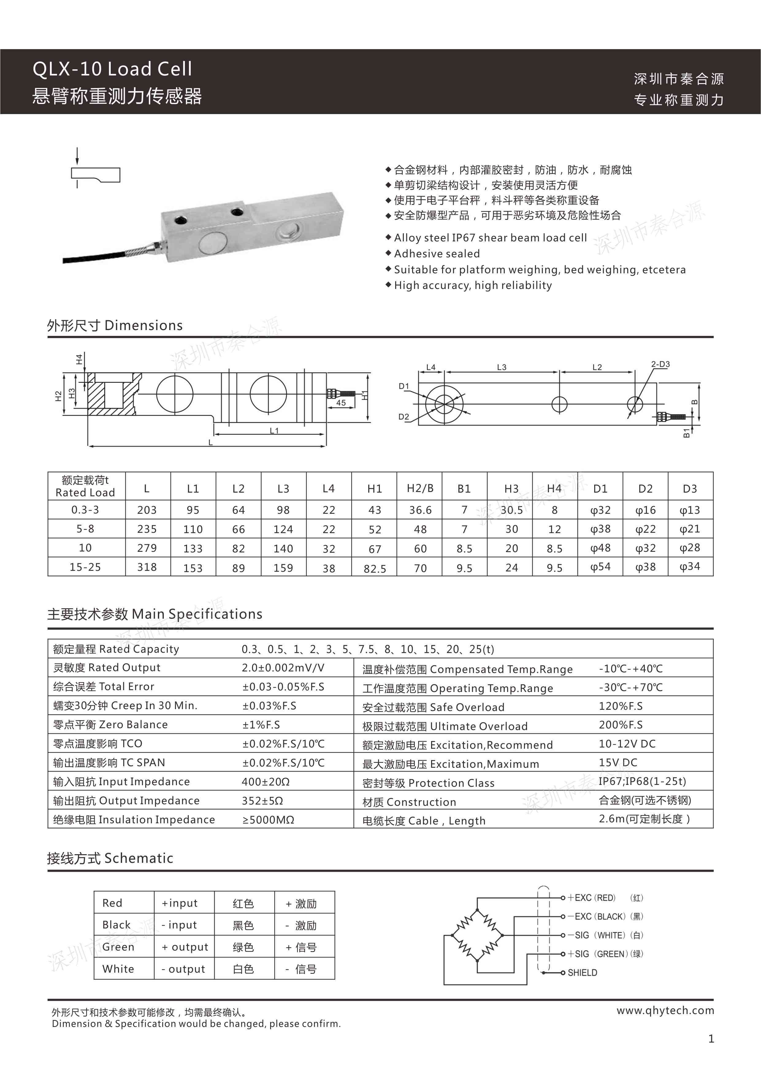 QLX-10-1T懸臂梁稱重傳感器: