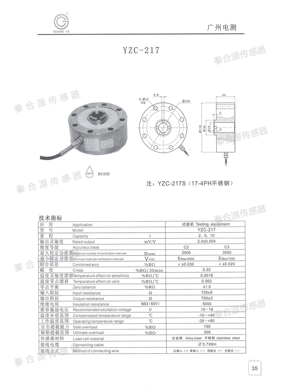 產(chǎn)品名稱:廣測傳感器YZC-217(2-10T)
