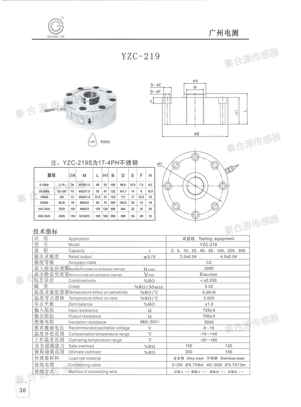 產(chǎn)品名稱(chēng):廣測(cè)壓式稱(chēng)重測(cè)力傳感器YZC-219(2-300T)