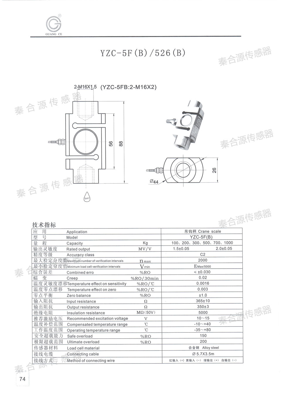 產品名稱:廣測拉壓雙向傳感器YZC-526(100-1000kg)