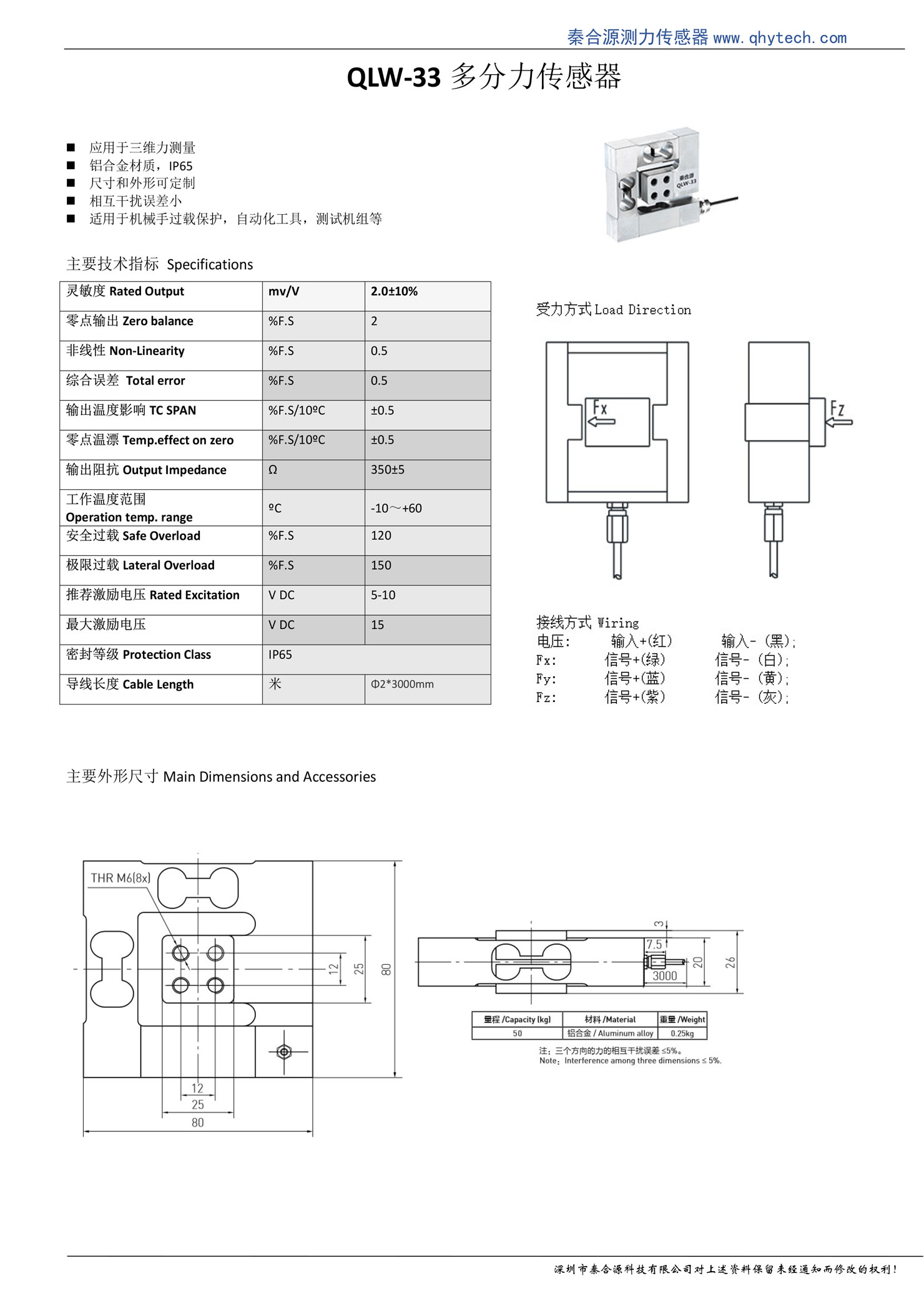 產品名稱:QLW-33多維力測量傳感器(X、Y、Z)