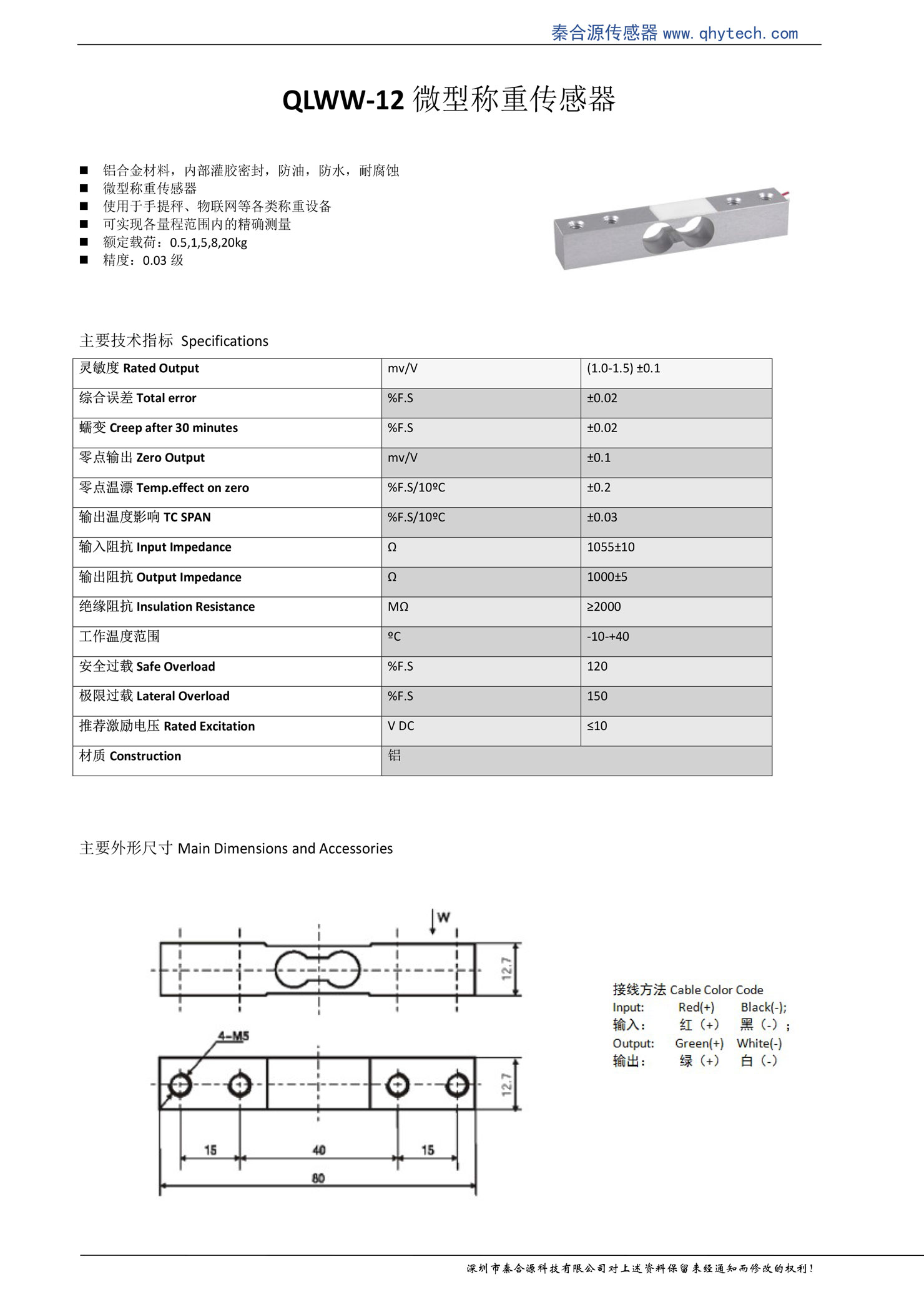 產品名稱:QLWW-12微型稱重傳感器物聯網稱重(0.5-20kg)