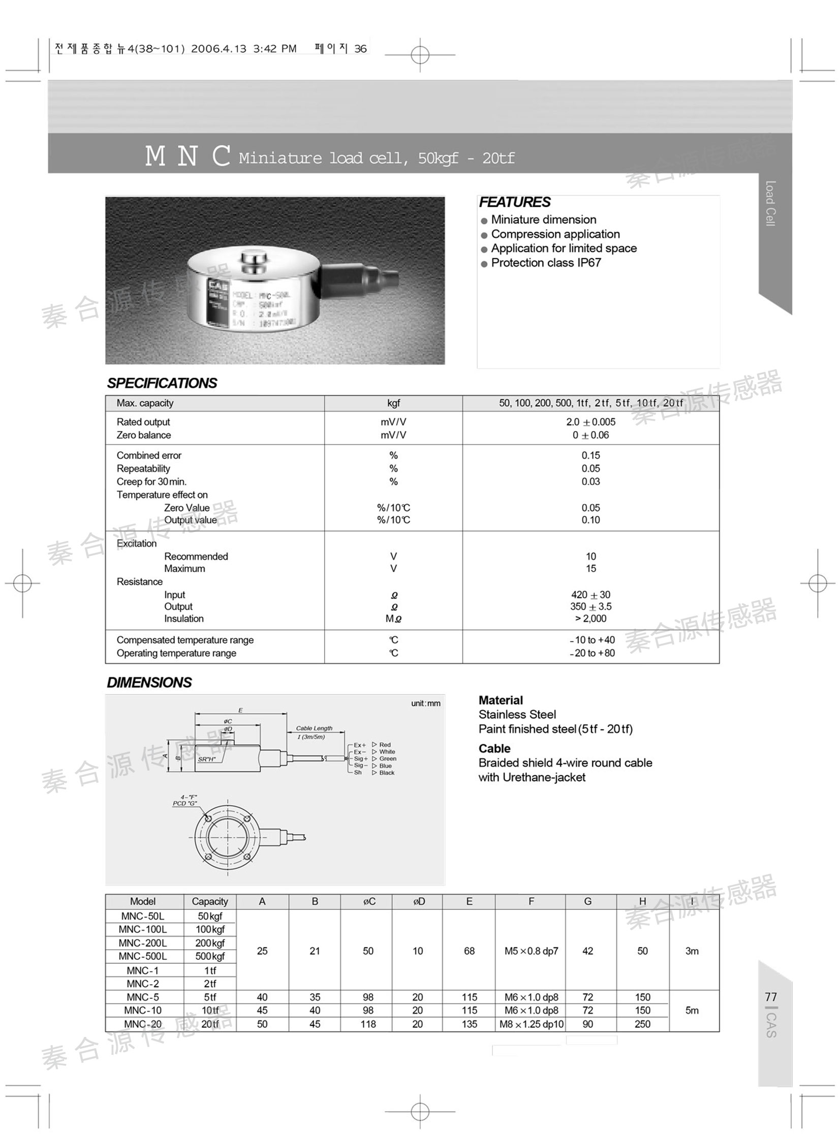 秦合源專業(yè)供應原裝CAS測力傳感器、稱重傳感器,更多產(chǎn)品信息歡迎咨詢;