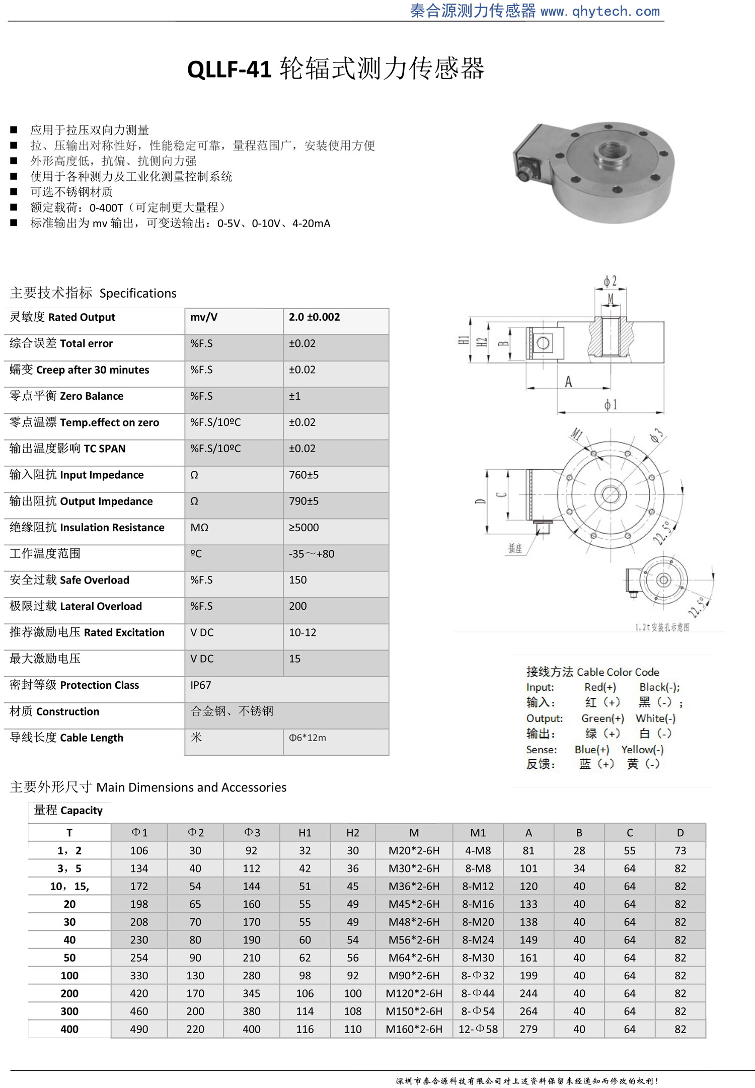 產品特點: 拉壓雙向力測量拉、壓輸出對稱性好,性能穩定可靠,可內置變送輸出:0-5V、0-10V、4-20mA;