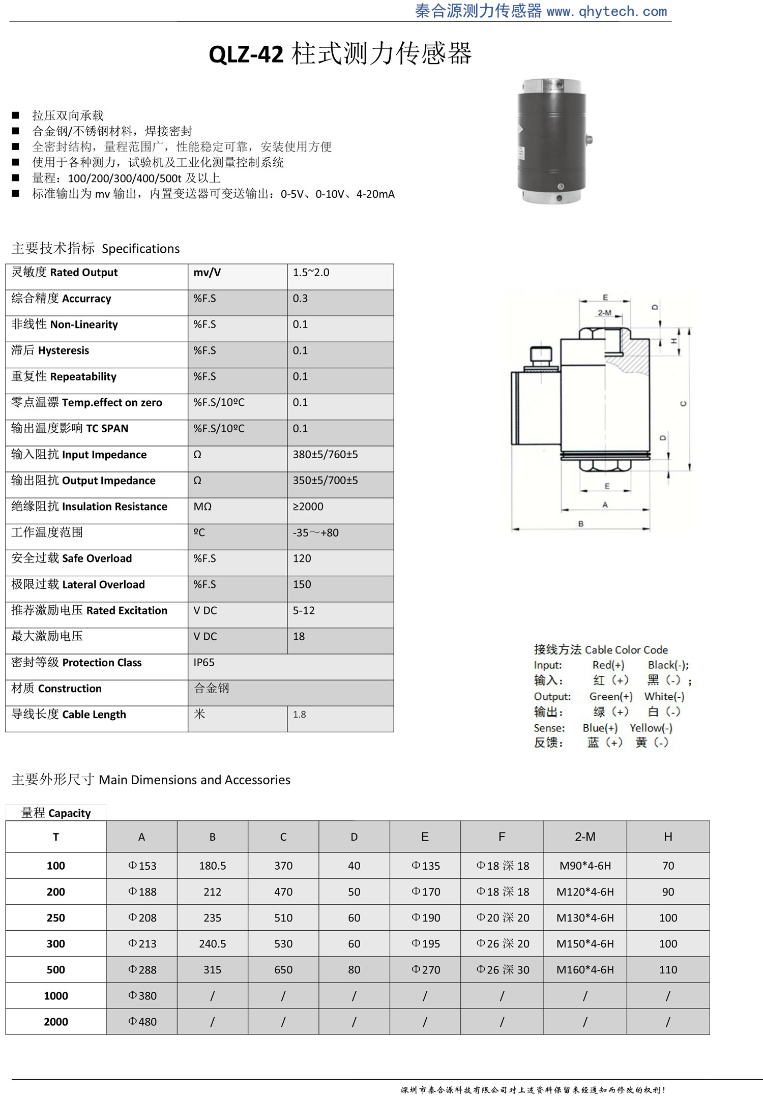 產(chǎn)品特點(diǎn): 大量程拉壓力傳感器,高精度,0.1級(jí)、0.3級(jí)檢定合格證